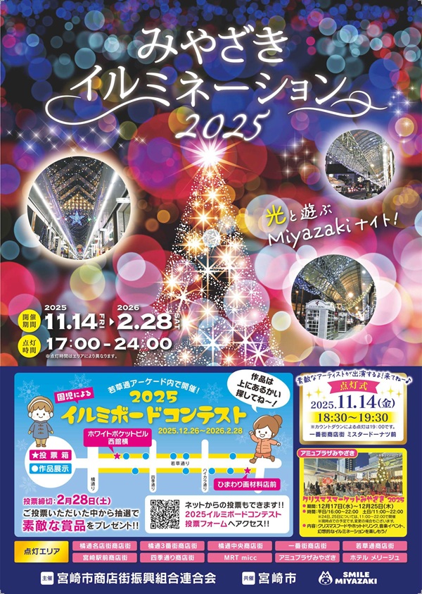 メインロードの橘通りを中心に約22万球のイルミネーションが光り輝きます!